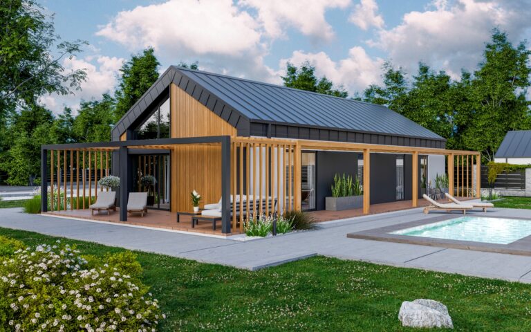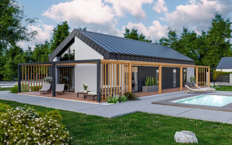 Parterowy dom o powierzchni 102 m² to przestronna propozycja dla osób, które marzą o pełnowymiarowym, komfortowym domu. Dzięki technologii szkieletowej oferuje trwałość i ekologiczne rozwiązania, pozwalające cieszyć się niższymi kosztami utrzymania. To przestrzeń, która dzięki inteligentnym rozwiązaniom dopasowuje się do stylu życia oraz potrzeb mieszkańców.